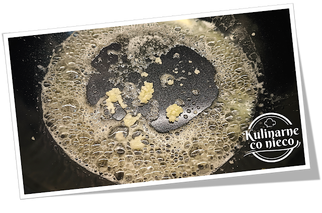 łyżkę masła, dodać przeciśnięty przez praskę czosnek i krótko podsmażyć, aby