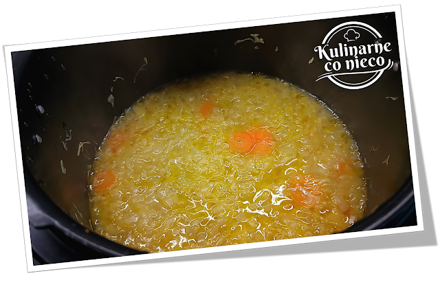 Następnie wlać bulion warzywny lub drobiowy, który powinien całkowicie