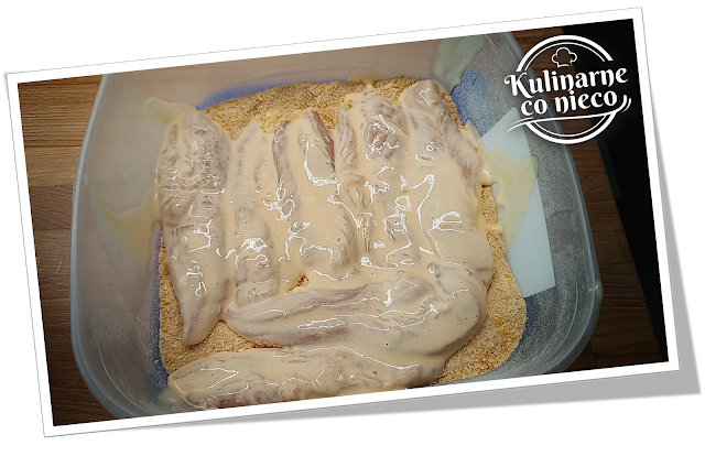 dobrze dociskając, aby panierka przylegała równomiernie.