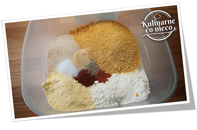 dodać mąkę kukurydzianą i pszenną, bułkę tartą oraz przyprawy: słodką i ostrą