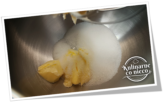 oraz cukier i ucierać do momentu uzyskania jasnej, puszystej masy.