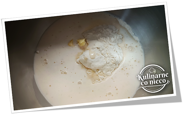 W ciepłym mleku rozpuścić świeże drożdże a