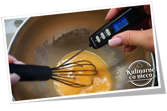 Mierzyć temperaturę termometrem cukierniczym. Ten etap trwa około 5–7 minut –