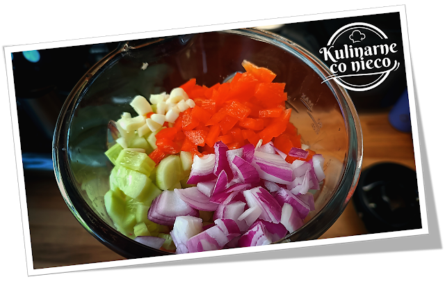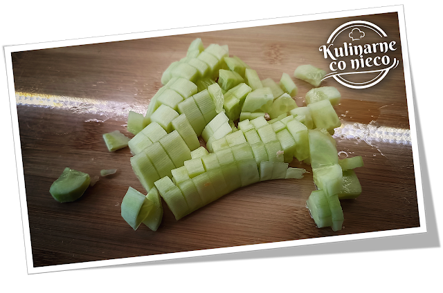 odłożyć kilka kostek ogórka do osobnej miseczki, aby potem wykorzystać go do