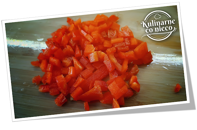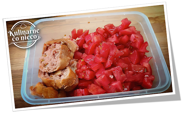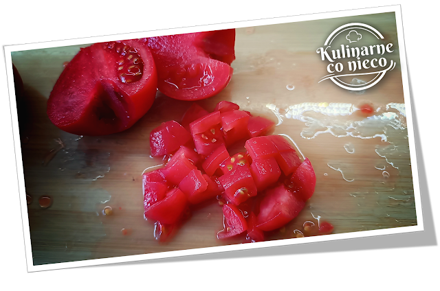 kilka pokrojonych pomidorów do osobnej miseczki, aby potem wykorzystać je do