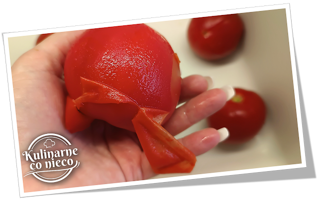 parzenia. Po przestudzeniu obrać pomidory ze skórki, przekroić na pół i usunąć
