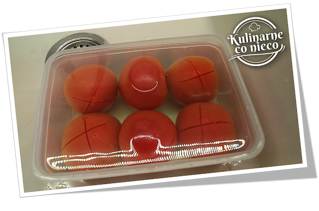 dużej misce i zalać wrzącą wodą. Pomidory sparzać przez ok 30 sekund – tylko do