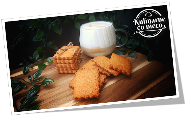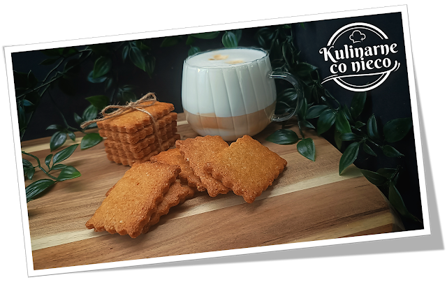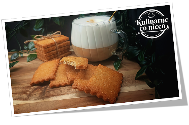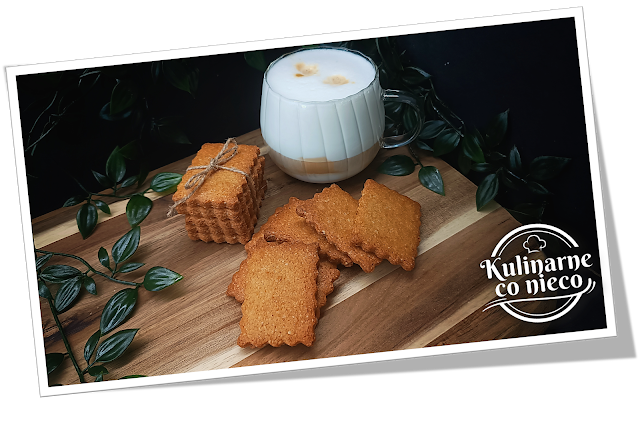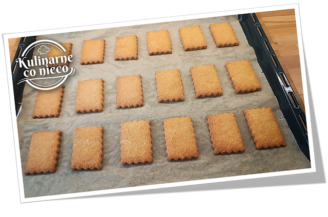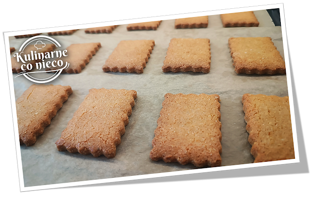 Ciasteczka są prostokątne, lekko chrupiące na brzegach, z delikatnie