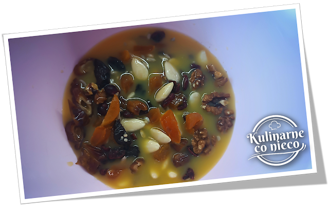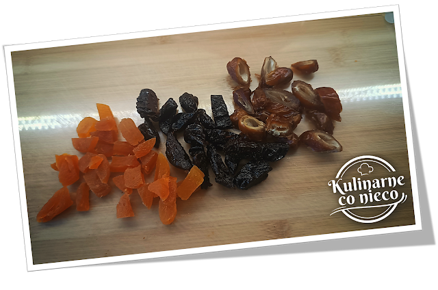 przygotowania owoców. Suszone morele, śliwki, daktyle należy pokroić na trochę
