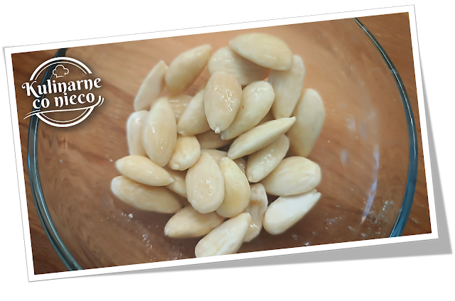 Migdały zalać wrzącą wodą i odstawić na ok 10 min. Po tym