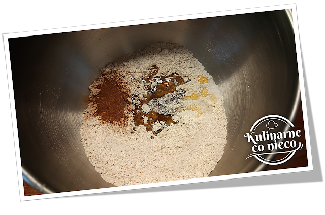 i cynamon, które równomiernie rozprowadzą się w suchych składnikach. Do tak
