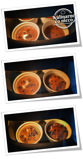 wierzch babeczek kilkoma kropelkami gorzkiej czekolady. Wtopią się one w