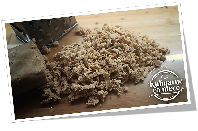 Drugą część ciasta zetrzeć na tarce o