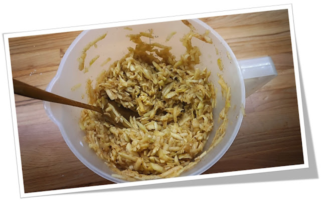 W tej wersji jabłka są świeżo starte na tarce o grubych oczkach, co nadaje