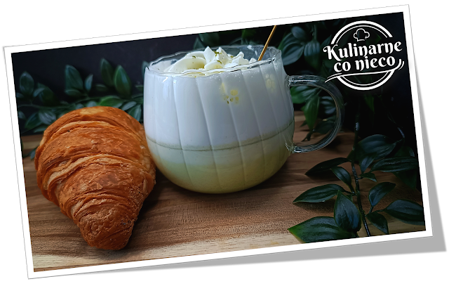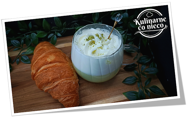 piankowy. Można dodatkowo udekorować wierzch kleksem bitej śmietany i delikatnie oprószyć proszkiem matcha.