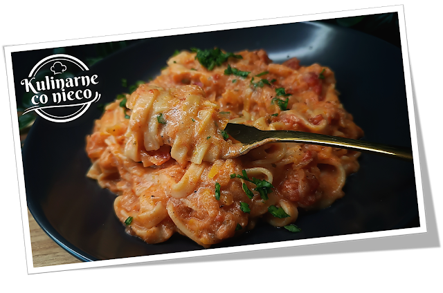 gorącym sosem tak aby każda wstążka była dokładnie oblepiona kremowym sosem.