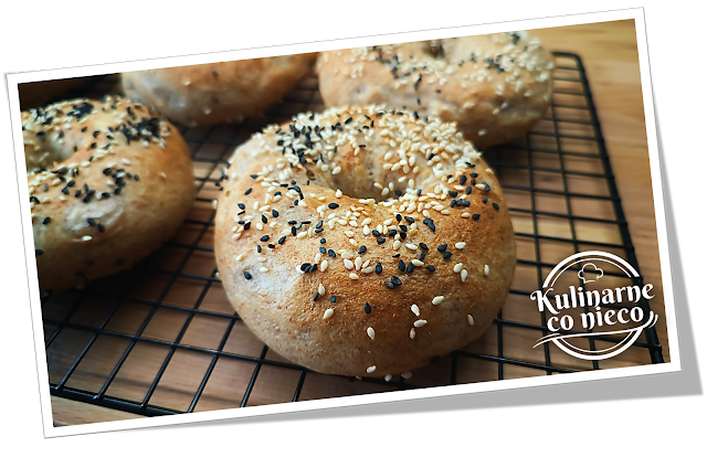 Po upieczeniu bajgle przełożyć na kratkę, aby odparowały i nie zrobiły się wilgotne od spodu.