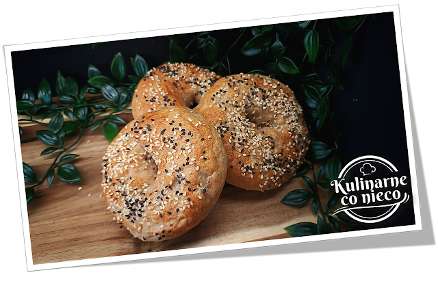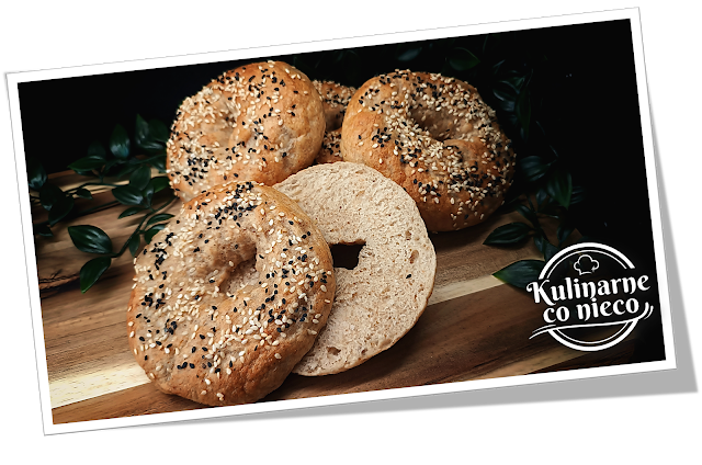 Każdy bajgiel zanurzać we wrzątku na około 1 minutę z każdej strony. Gotowe bajgle wyjmować łyżką cedzakową i układać na czystej ściereczce lub kratce, aby odciekły z nadmiaru wody.