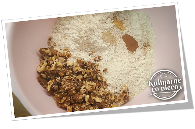 orzechy, proszek do pieczenia, sodę oczyszczoną, przyprawy (cynamon, imbir, kardamon)