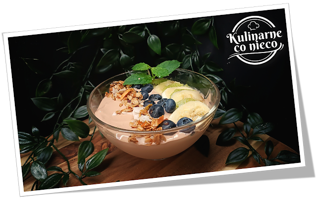 Cały przepis został przygotowany z myślą o urządzeniu Ninja Creami, które umożliwia zamianę zamrożonej masy w perfekcyjnie kremowe smoothie bowl. Dzięki specjalnemu programowi Smoothie Bowl uzyskuje się strukturę gęstą, jedwabistą i przyjemną w jedzeniu łyżką – coś pomiędzy deserem lodowym a pożywnym koktajlem.