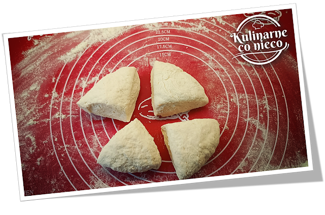 ciasto na 4 równe części i każdą uformować w kulkę.