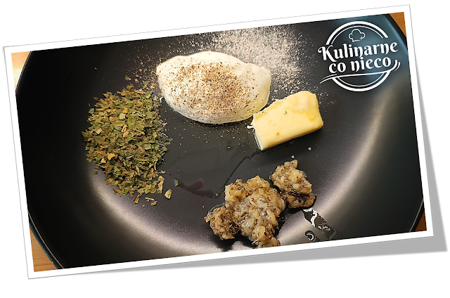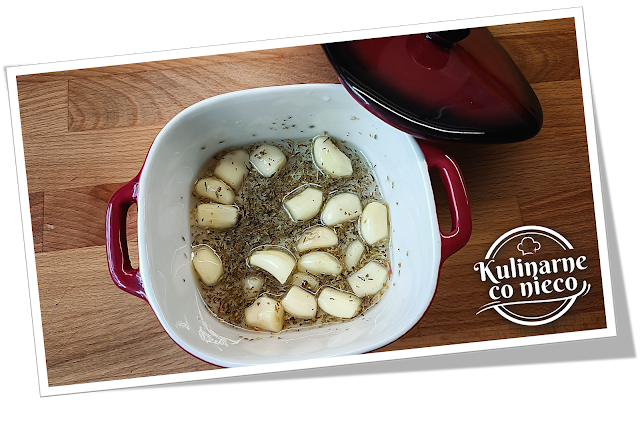 we krwi. W miejsce tłustych sosów masłowych użyto czosnku pieczonego w