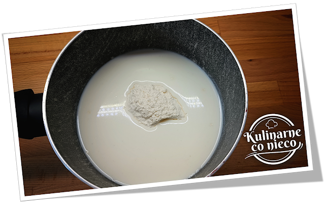 orkiszowej z 100 ml zimnego mleka. Dokładnie wymieszać trzepaczką, aby nie było