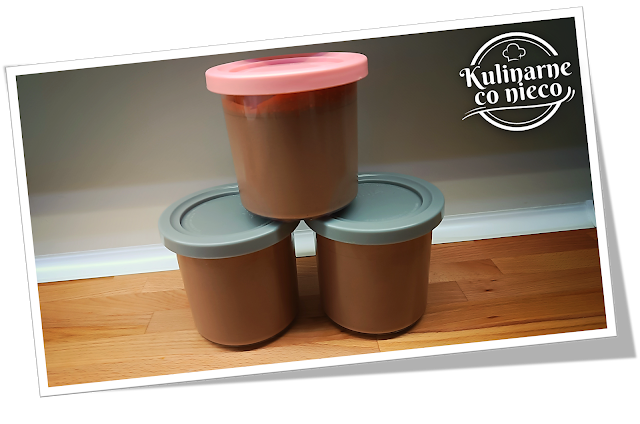 do trzech pojemników Ninja Creami, zamknąć szczelnie pokrywkami i wstawić do