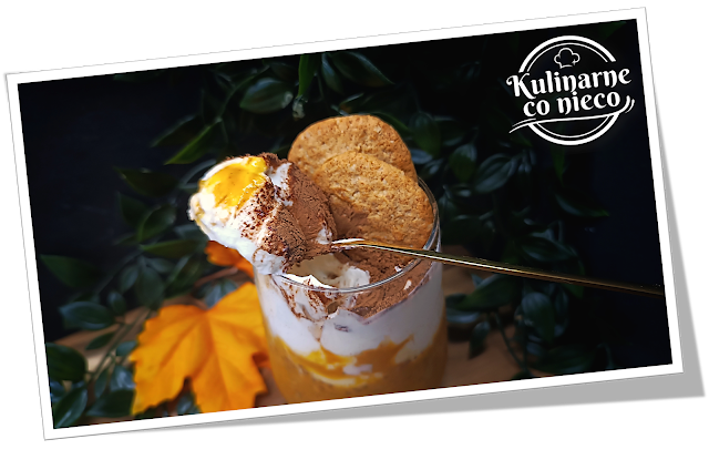 herbatnikiem. Złoto dyni, biel kremu i ciemne kakao tworzą kompozycję, która