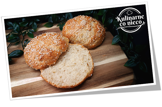 wnętrze pozostaje delikatne, a skórka lekko zarumieniona, z subtelnym sezamowym