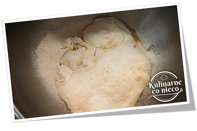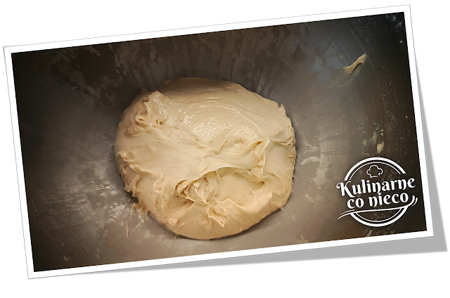 Ciasto wyrabiać przy użyciu haka przez 8 minut lub ręcznie przez ok 12 min.