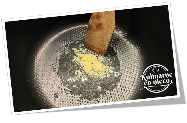 – tłuszcz powinien się rozgrzać, ale nie dymić. Następnie dodać czosnek oraz