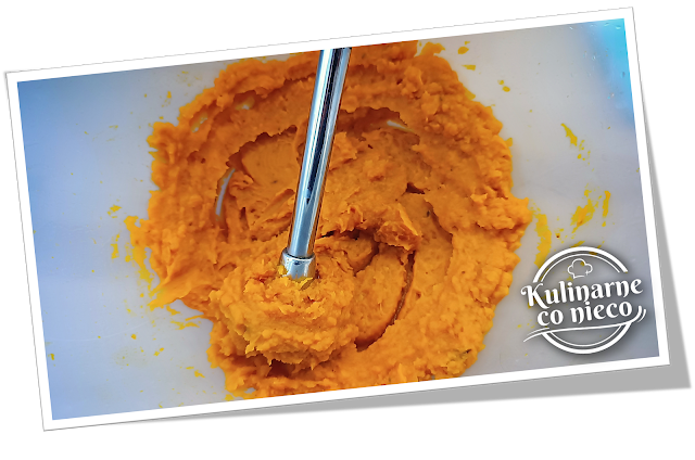 Upieczoną dynię przestudzić a następnie zmiksować na gładkie, aksamitne puree.