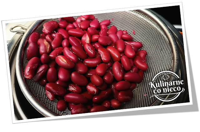 fasolę odsączyć z zalewy na sitku i dokładnie przepłukać pod bieżącą wodą.