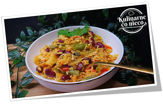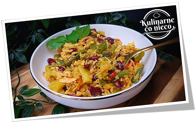 szarpanym mięsem lub delikatnym boczkiem, choć pozostaje w pełni wegańska. Ryż