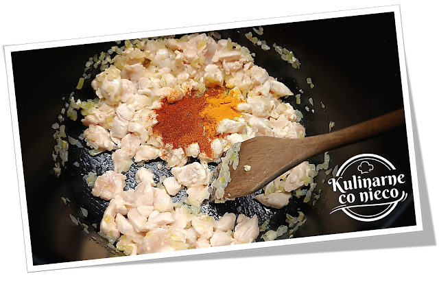 przyprawy. Wymieszać, aby przyprawy otuliły mięso.