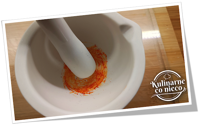 ilość nitek szafranu (6 sztuk) wsypać do moździerza i utrzeć na jak