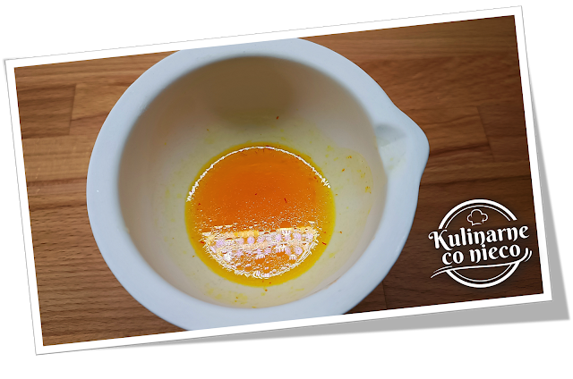 cały przygotowany napar szafranowy wraz z roztartymi nitkami.