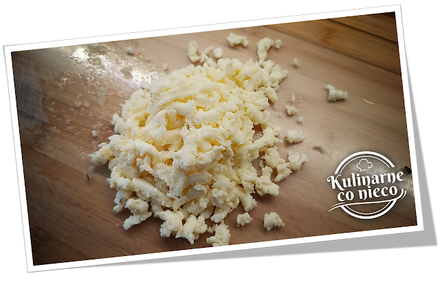 i przecisnąć przez praskę. Połowę zostawić do sera cheddar.