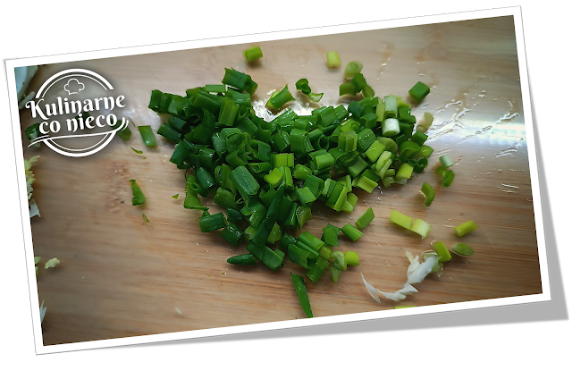 posypać pozostałą ¼ porcji posiekanego szczypiorku.