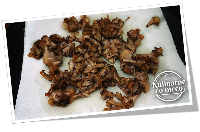 pieczarki przełożyć na talerz wyłożony kawałkiem papierowego ręcznika, aby