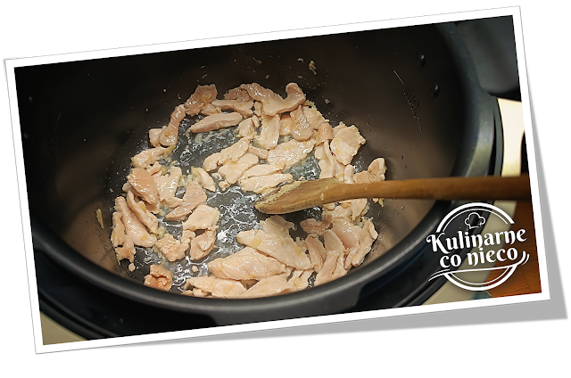 program ,,ŚREDNIE PODSMAŻANIE”. Do misy wlać oliwę, poczekać aż się rozgrzeje a