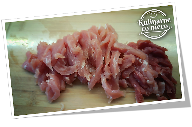 szynki umyć, osuszyć i pokroić w cienkie paski.