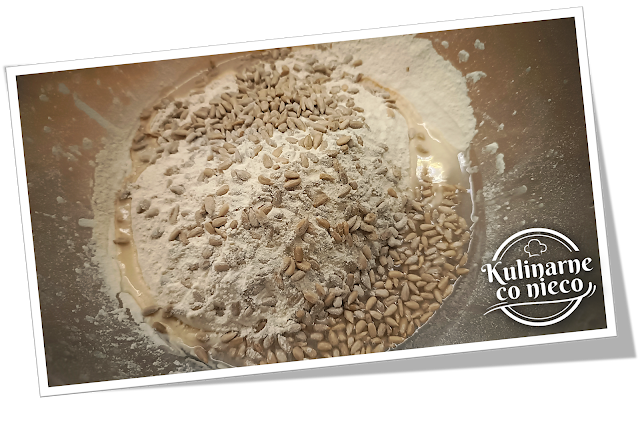 mąkę orkiszową jasną, mąkę orkiszową pełnoziarnistą, sól oraz ziarna