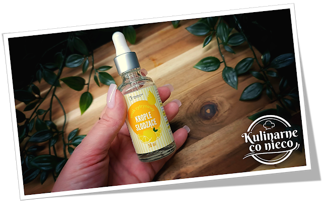 szklance kilkoma kroplami słodzika o smaku cytrynowym lub neutralnym.