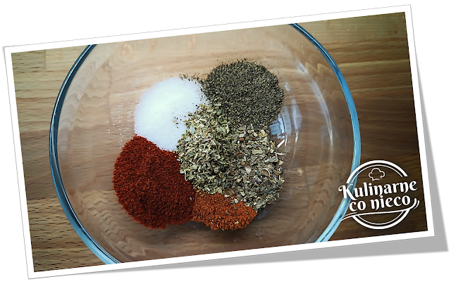 świeżo mielonym pieprzem, papryką słodką i ostrą oraz suszonym oregano i
