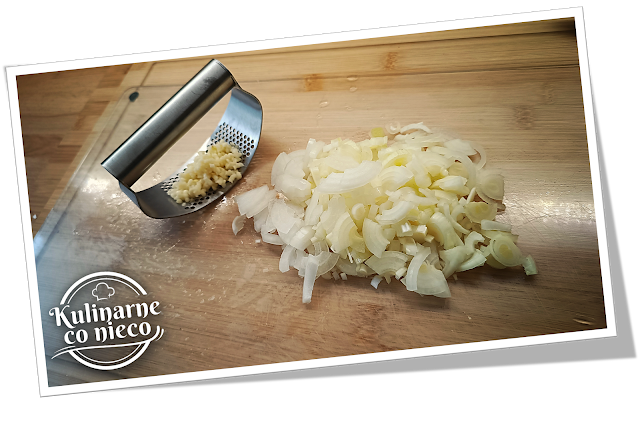 Cebulę pokroić w drobna kostkę a czosnek