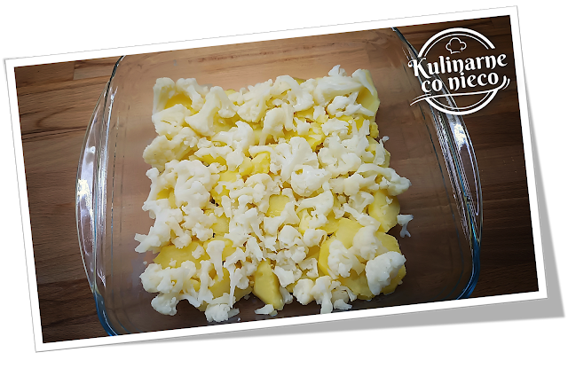 sosu. Ponownie ułożyć pozostałe ½ porcji ziemniaków, kolejną ⅓ porcji kalafiora