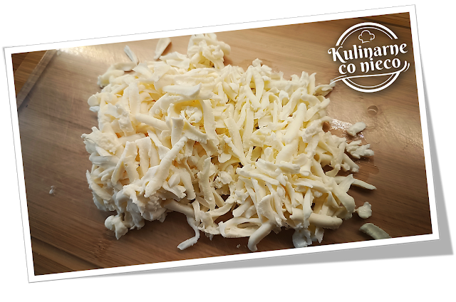 Polać resztą sosu i obficie posypać startą na grubych oczkach tarki mozzarellą