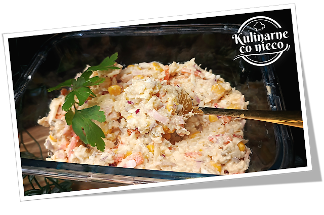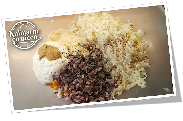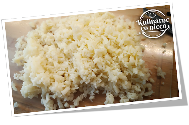 sałatki jest kalafior ugotowany al dente i drobno starty, dzięki czemu staje